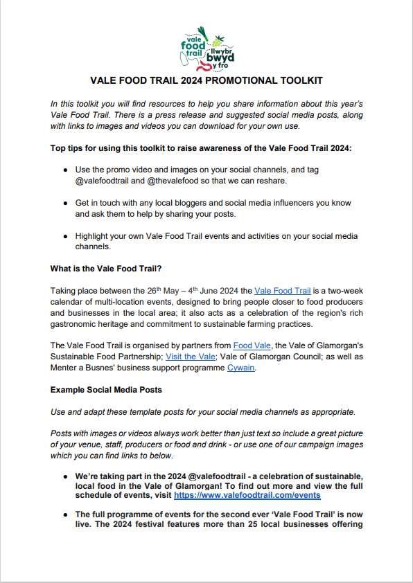 Vale Food Trail - Resources